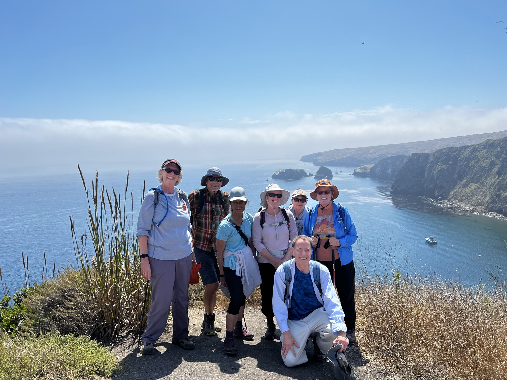 The Santa Cruz Island trip began with fine weather. A perfect calm marine layer ensured a smooth crossing to the island. We had 12 participants and 4 leaders and we split into a moderately difficult hike and an easy hike. Participants came from several other Sierra Club chapters and we even had a college intern visiting from Ohio. Highlights of the trip included learning about how lesbian seagulls on the islands (Anacapa Island to be exact) changed the gay rights movement in the 1970s. (He said what?!!)